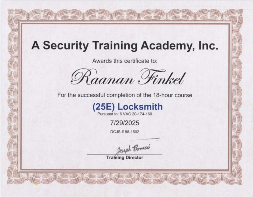 Raanan stopped by our house within an hour of calling him! Our door knob was locked to our garage, no access to our cars. He was able to unjam the lock and remove the piece that was broken and replaced it within 10 minutes! Worth every penny. Highly recommend!